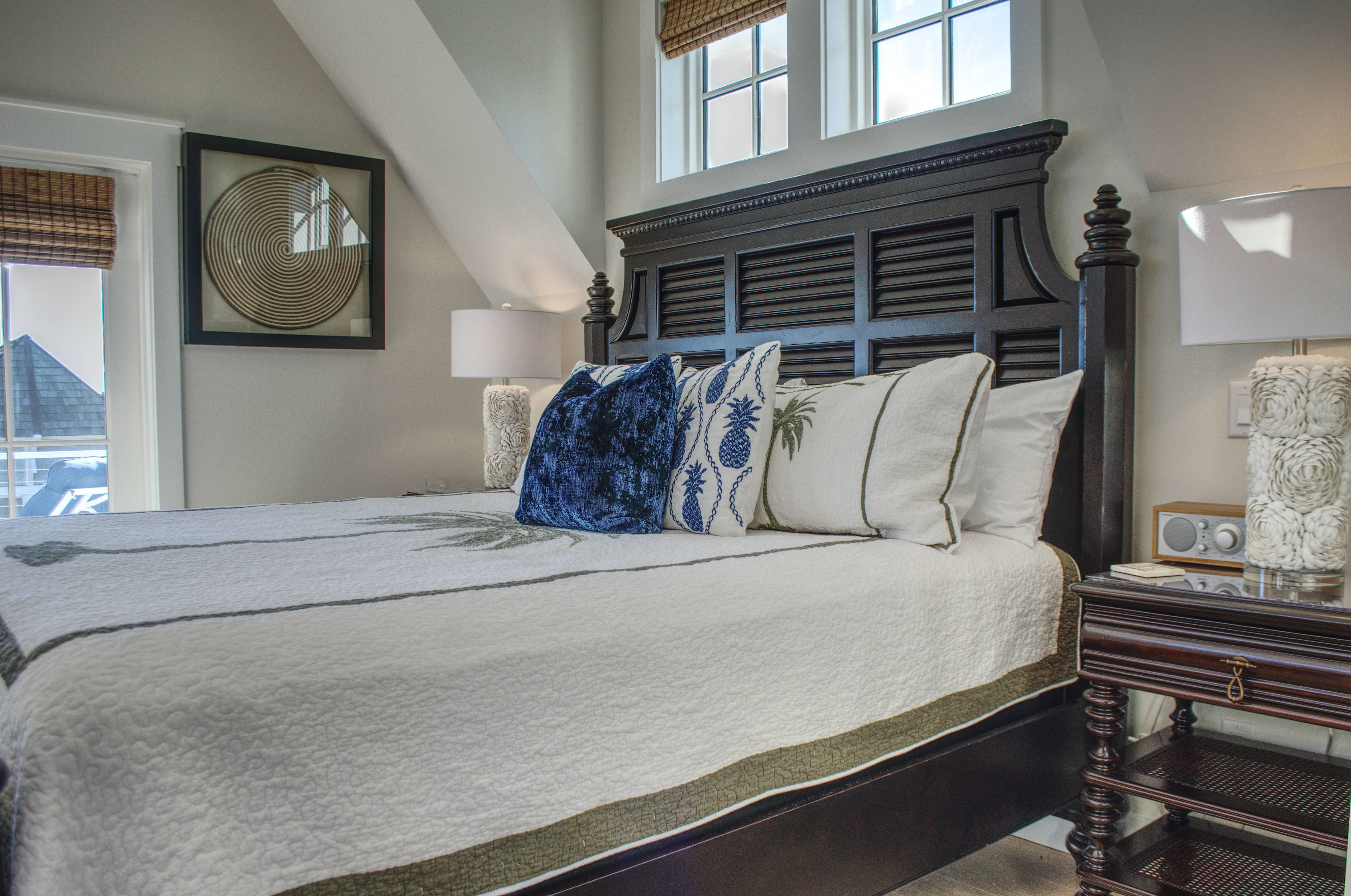 This house is so beautifully decorated with new furniture. The comfy king bed has a pillow top and great support, our sleep was so good. We spent hours on the screened in back deck enjoying the deep cushion seating and scenic river views. It is a short walk to the beach and conveniently close to the restaurants and ferry. Dave and Rose were easy to contact and keep the place very clean.