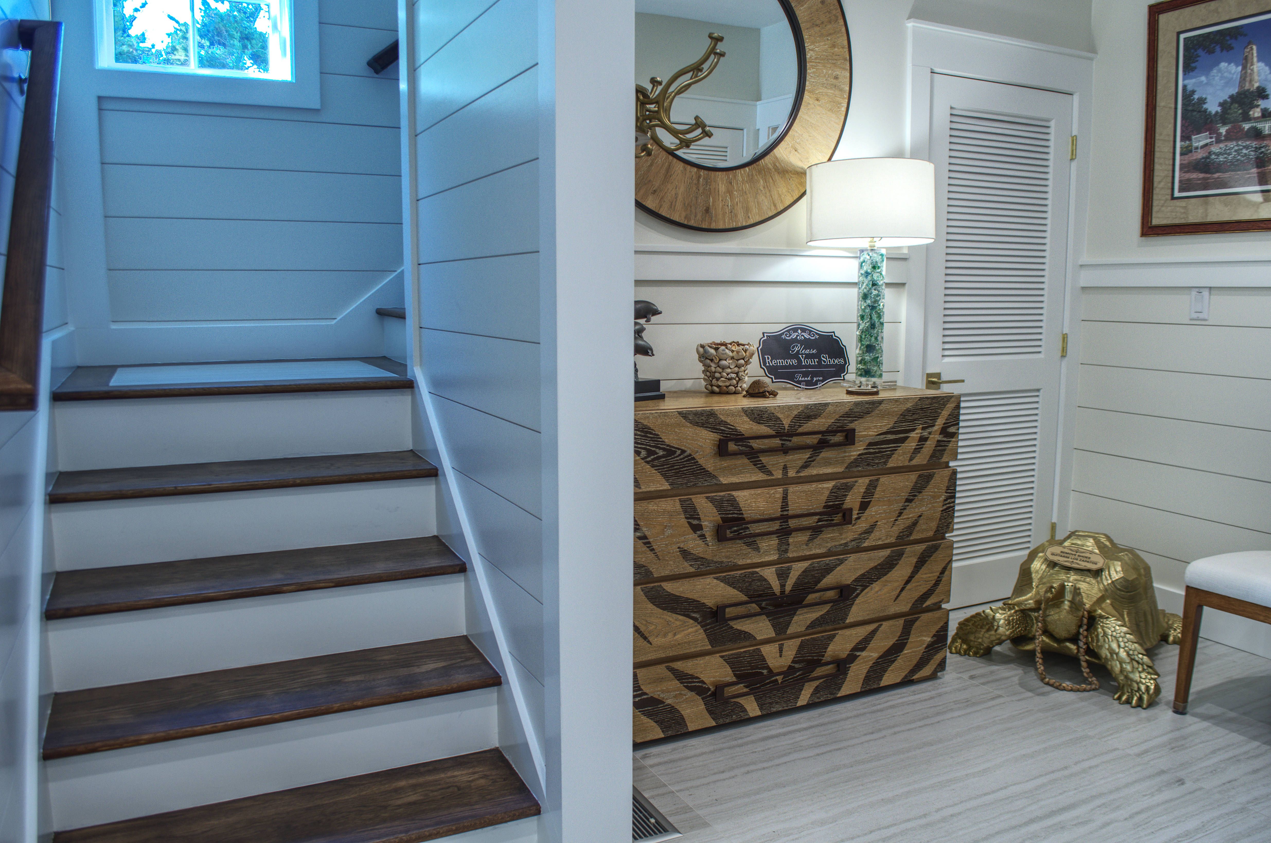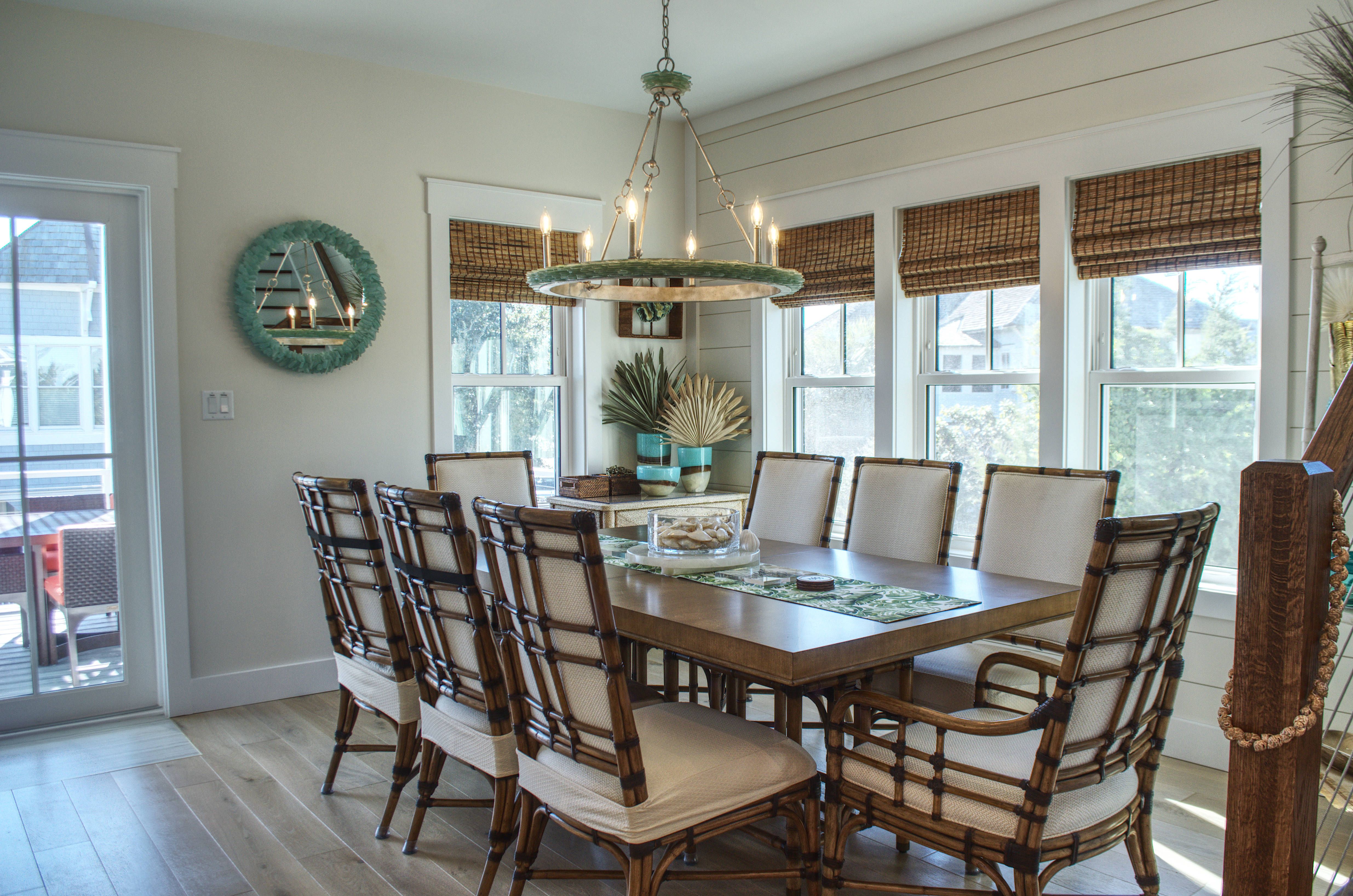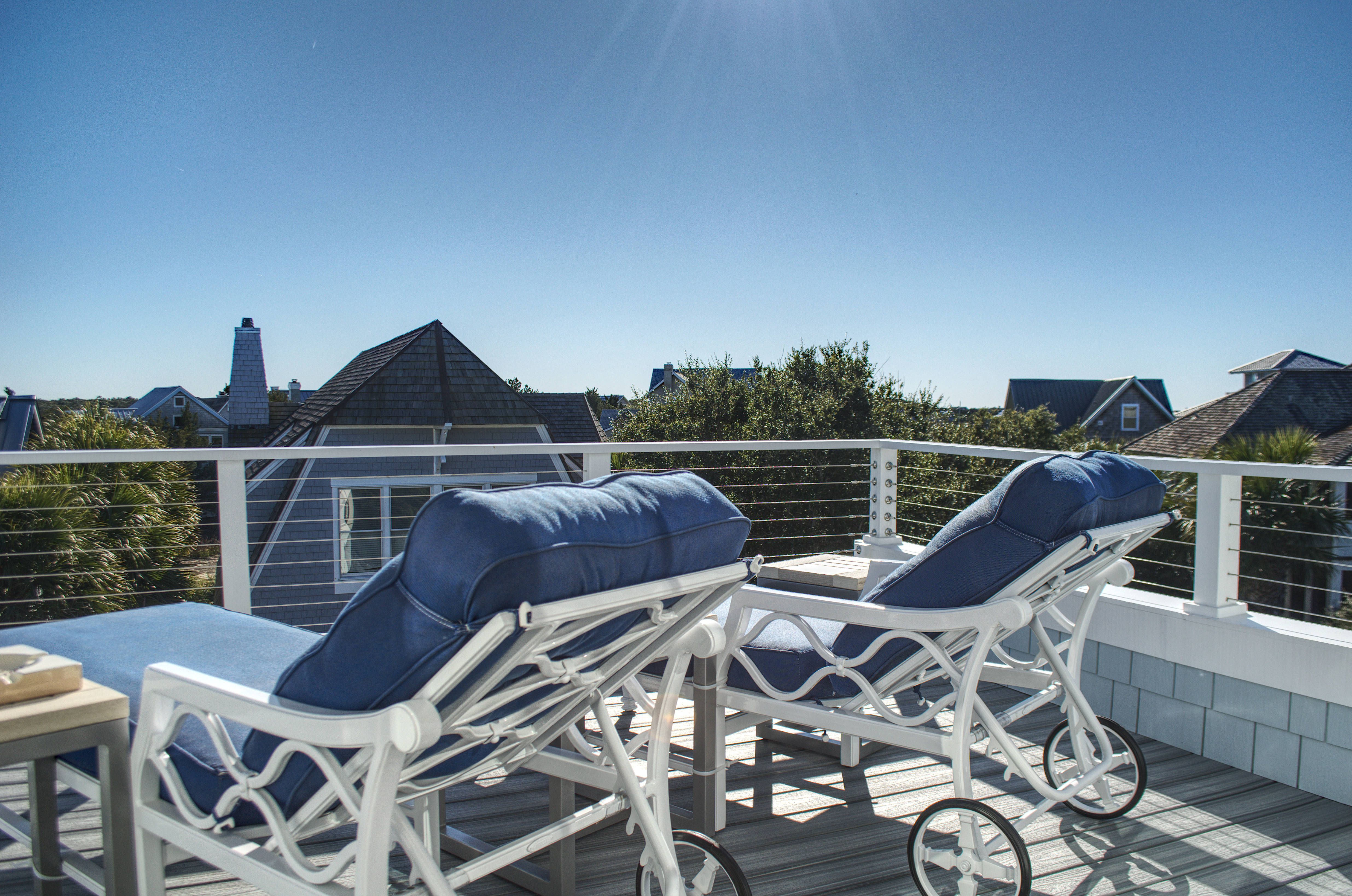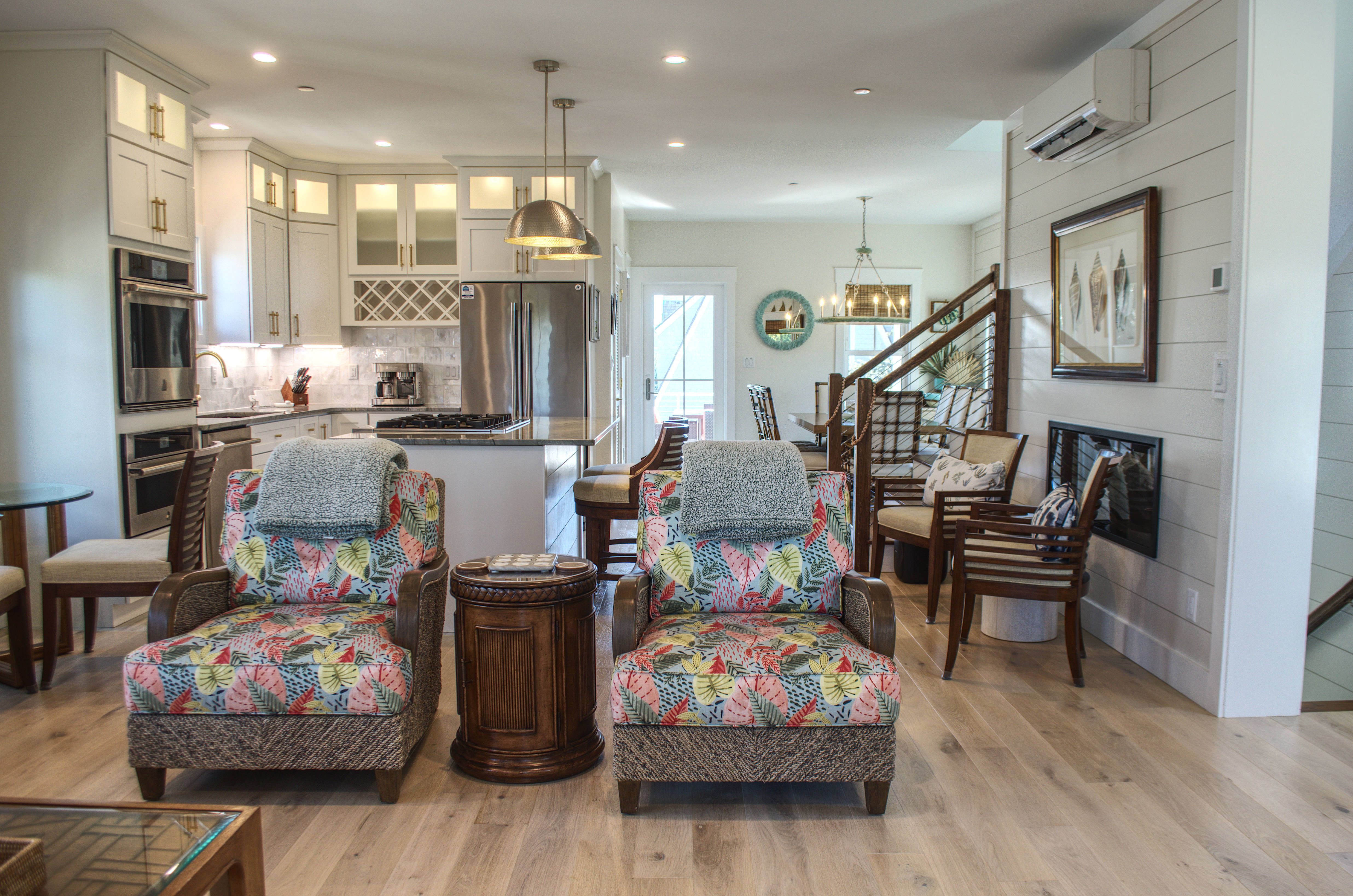 Ascend to the second floor, where the main living area, kitchen, fireplace, and dining room create the perfect space for entertaining and bonding with loved ones. A half bath adds convenience, while the screened-in rear porch, complete with custom outdoor furnishings, offers breathtaking views of the mouth of Bald Head Creek and the vast ocean beyond. For those who appreciate the finer things in life, the covered front porch provides an elegant setting for alfresco dining at an 8-person outdoor table.