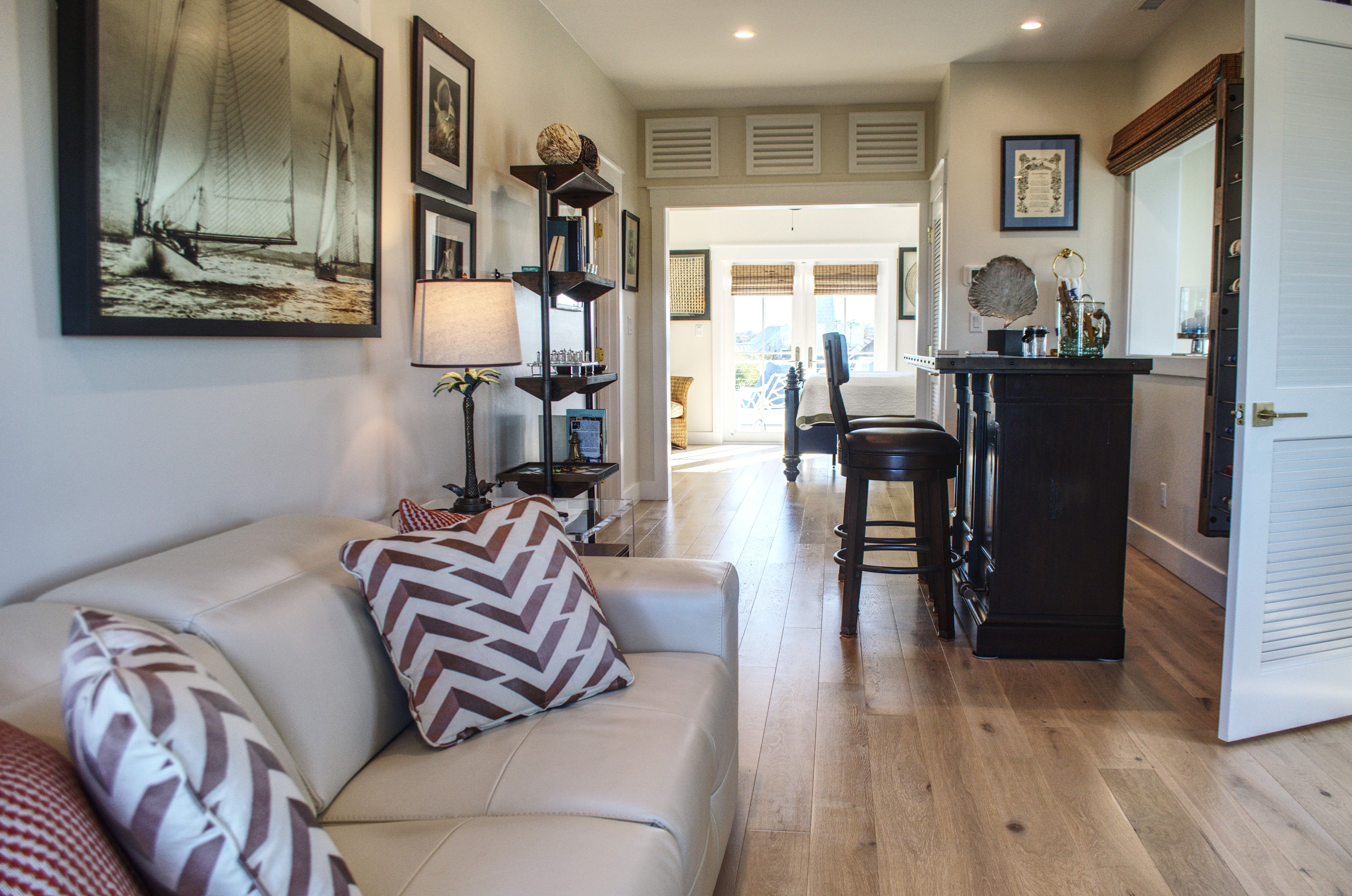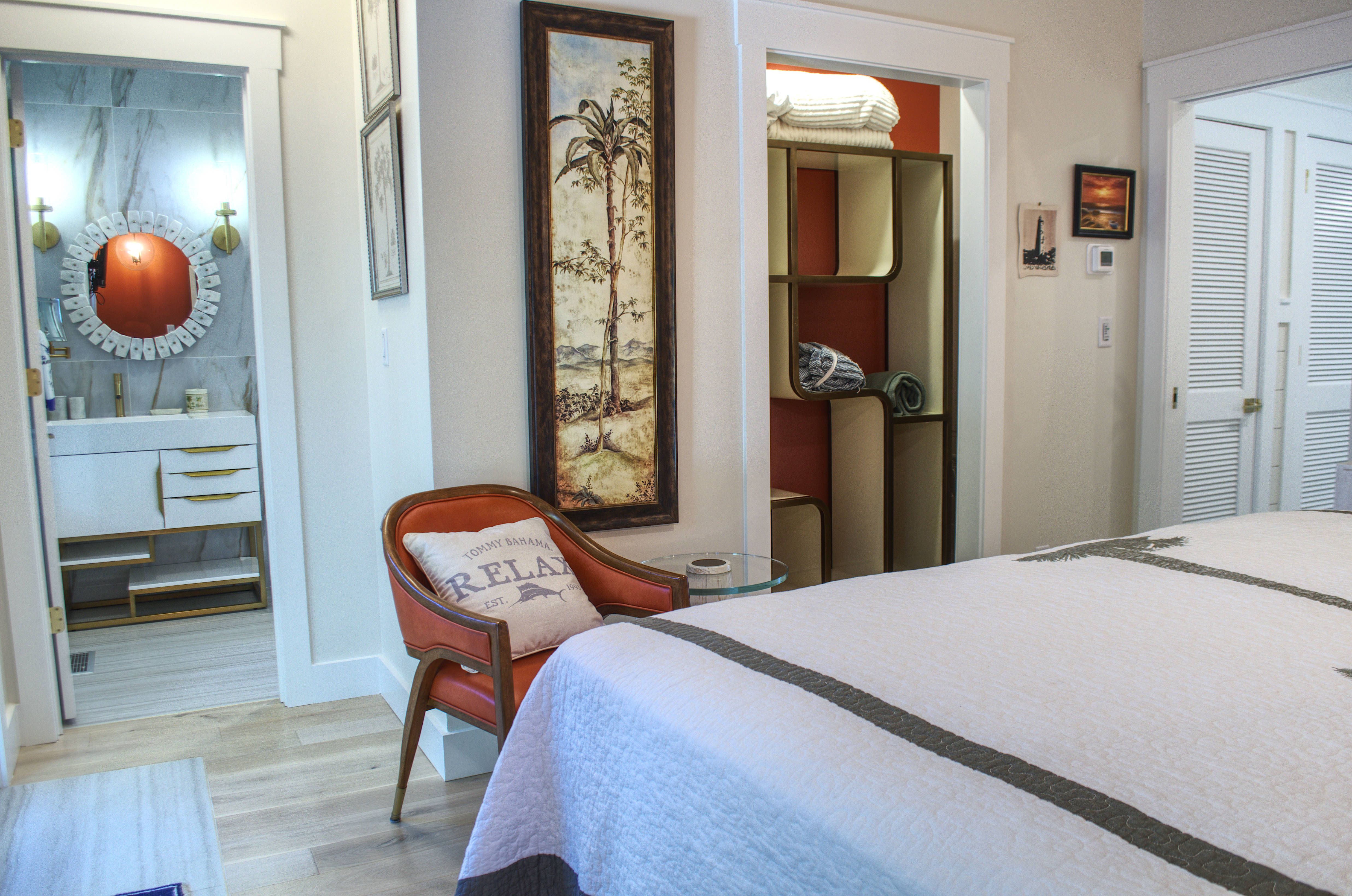 We walked in and, wow, it was so beautifully decorated with new furniture. The comfy king bed had a pillow top and great support, our sleep was so good, we would not want to stay anywhere else. We spent hours enjoying the padded deck seating and scenic river views. It is a short walk to the beach and close to the restaurants and the Ferry. David & Rosemary were easy to contact and kept the place very clean.