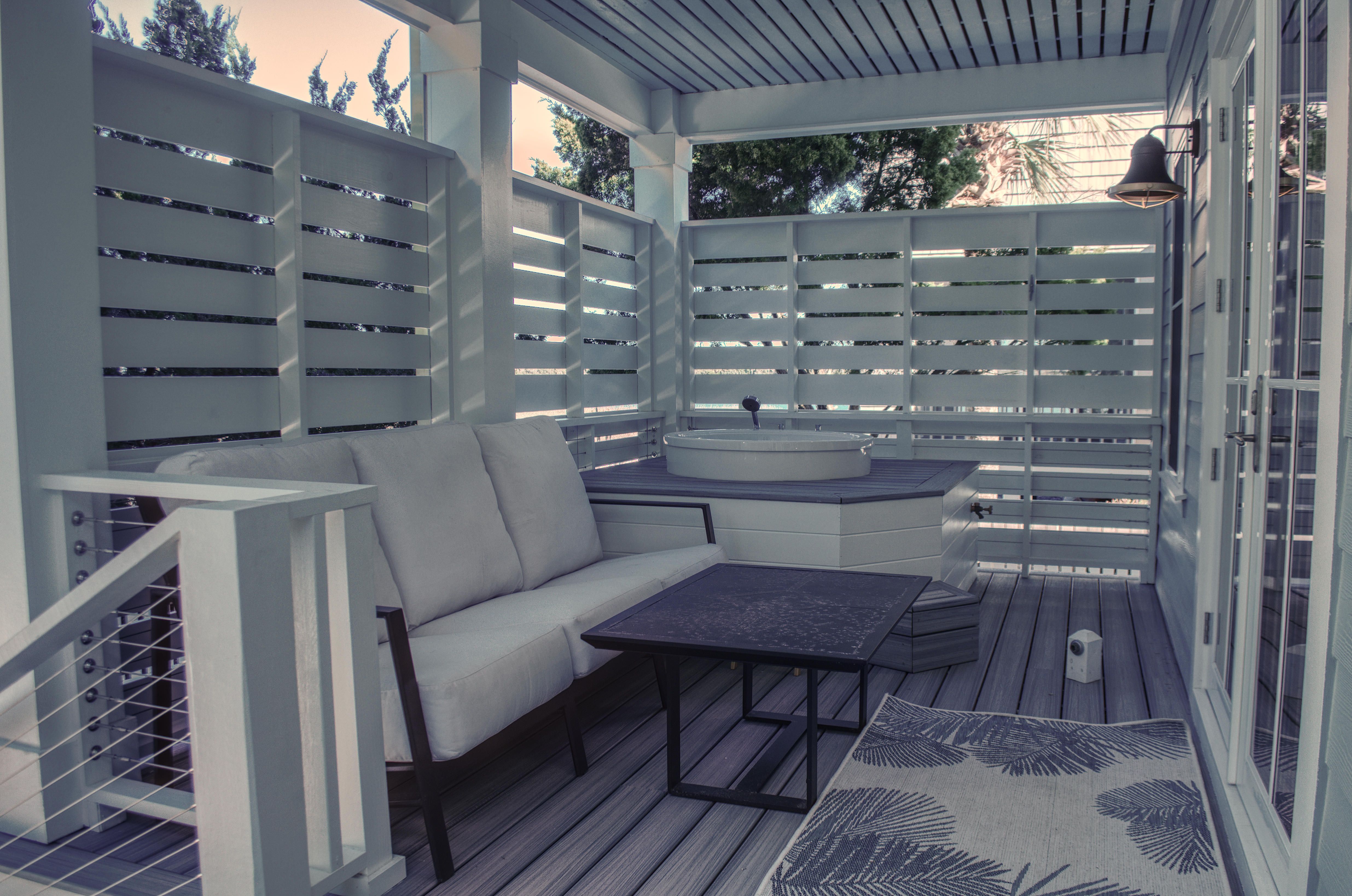 As you step into the grand entrance foyer on the first floor, you'll be greeted by the opulence that awaits. The master bedroom, complete with a king-sized bed, private ensuite featuring a quartz tiled shower, and a personal porch with a Japanese soaking tub, will transport you to a world of relaxation and rejuvenation. Two additional guest rooms, each with a queen-sized bed, share a full bath adorned with a marble tiled shower and bath, ensuring that every member of your party is treated like royalty.