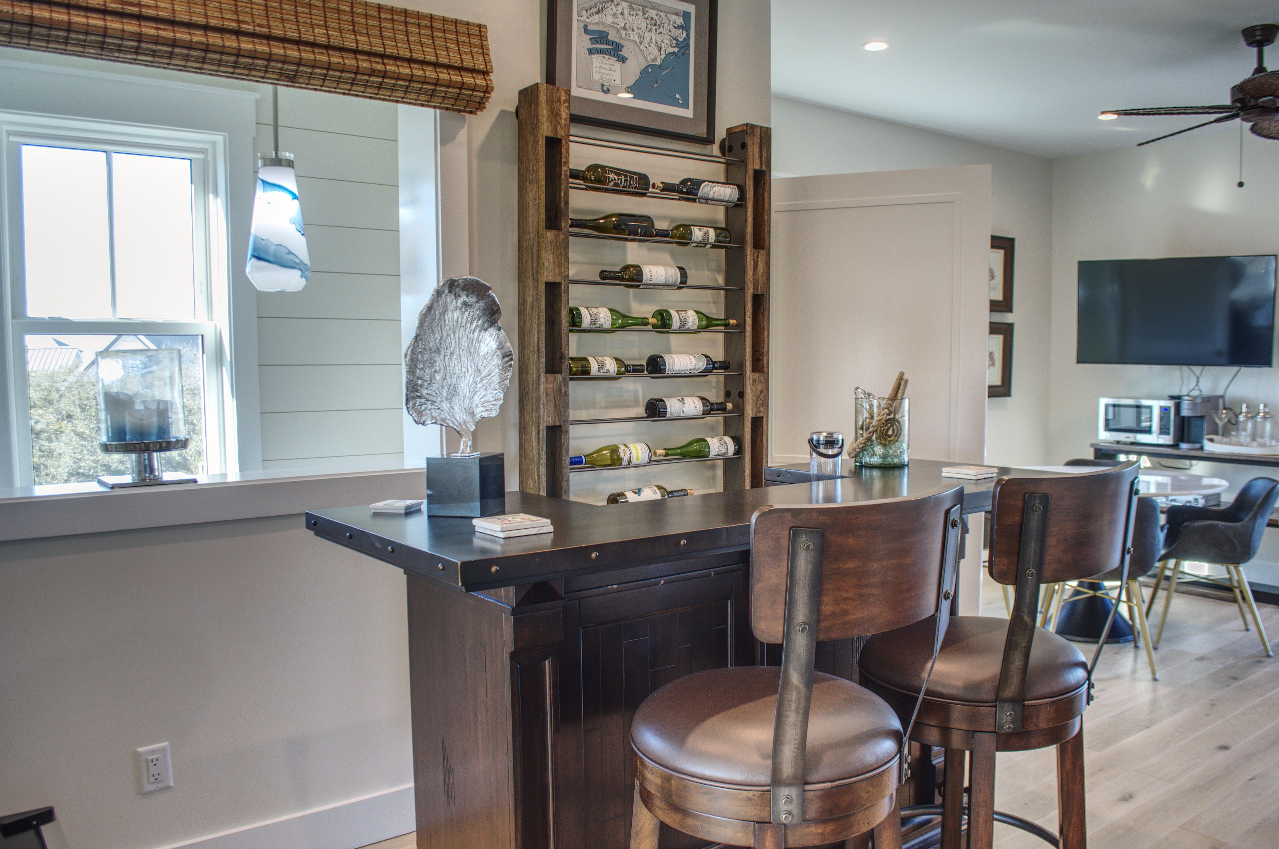 The pièce de résistance awaits on the third floor, where the master suite spans the entire level, offering unparalleled luxury and privacy. An entertaining area with a wine bar, card table, and sofa provides the perfect setting for intimate gatherings, all while showcasing the absolute best views of the BHI Creek, Salt Marsh, and Ocean. Step out onto the open porch to bask in the sun, gaze at the stars, and savor an evening cocktail in the perfect setting. The front porch, complete with stunning creek views and lounge chairs, invites you to unwind and soak in the serenity of your surroundings.